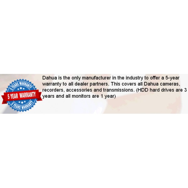Dahua giver 5 år's Garanti gennem deres partnere (aut. forhandler).