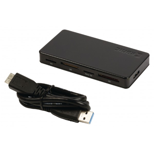 M2, MS og MS-Pro. En USB 3.0-hub gør det muligt at overføre data med