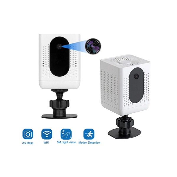 White mini WiFi camera designed for home security.